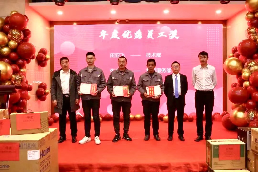 年会上,江苏塑之源汪发兵总经理,江苏塑之源杨建刚副总经理,江苏塑之源钟芳辉副总经理对这三名优秀员工授予荣誉证书及现金奖励。